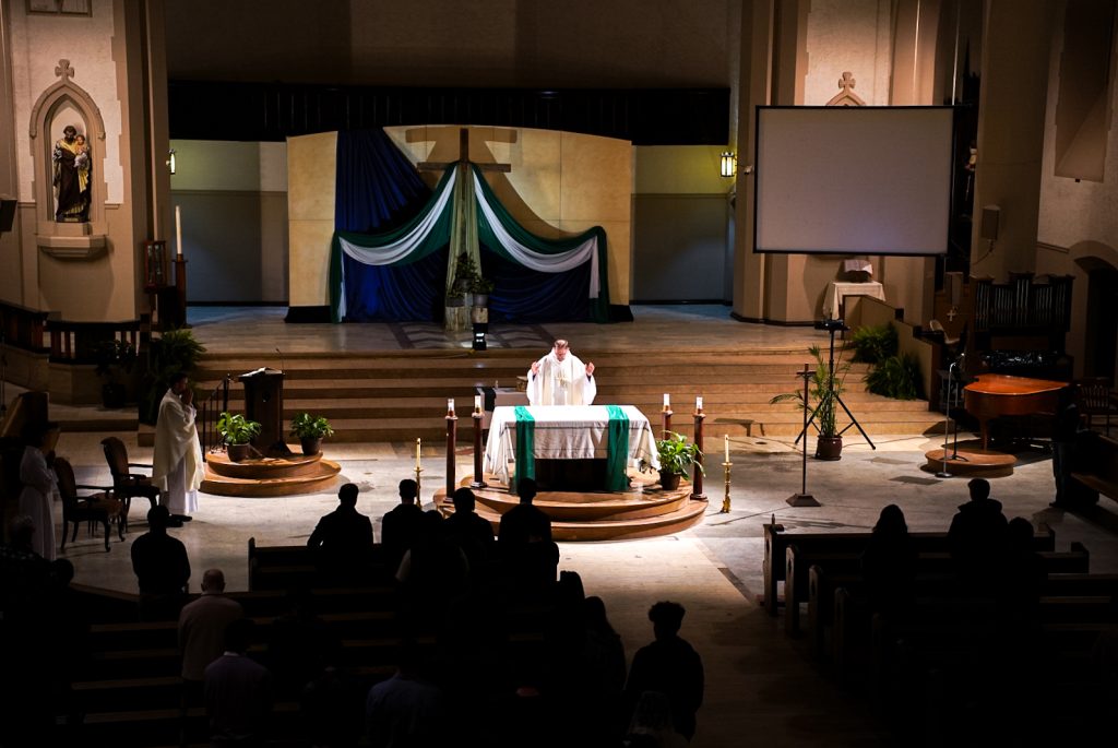 More than 160 Catholic young adults gathered on Sunday, November 23 at 7:00 pm to celebrate the Solemnity of Our Lord Jesus Christ, King of the Universe at St. Joseph’s Parish in downtown Ottawa — in a Neo-Gothic church consecrated in 1932. They were joined by 12 choristers and organist Jamie Loback, leading the congregation in a selection of hymns that complemented the grandeur of a feast that marks both the end of the Liturgical Year, as well as Christ’s dominion over all Creation. Fr. Robert Laroche, the Pastor of St. Joseph’s Parish and a member of the Missionary Oblates of Mary Immaculate, presided and offered the homily. Fr. Mark Augustine, a doctoral candidate in Canon Law at Saint Paul University, concelebrated.