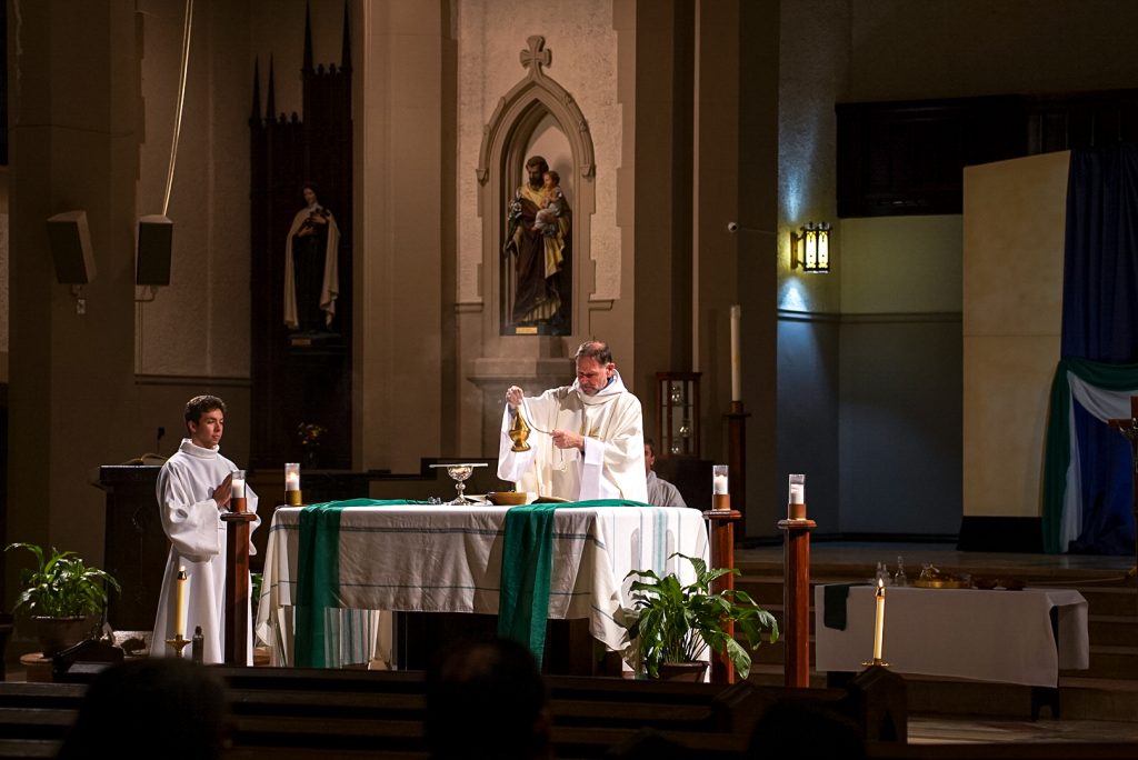 Many young adults are discovering the ritual and Sacramentality of Catholicism for the first time. They may not have been cradle Catholics and they likely grew up in a thoroughly secular society — more so than the one in which Millenials and Gen X came of age. For them, ritual and liturgical traditions aren’t linked to memories of a childhood when the Church was a far more dominant force in society, nor to negative experiences of clericalism. In the case of St. Joseph’s, many young adults also come from other countries and cultures, contributing a diversity of experiences and backgrounds to the parish and to its social justice ministries, where a significant number of them volunteer. Several had shared their attachment to the Solemnity of Our Lord Jesus Christ, King of the Universe in particular. Engaging in dialogue with both clergy and lay staff, they asked for the opportunity to elevate the liturgy with incense, altar servers and bells — and for the chance to fully, consciously and actively participate in the Church’s rich liturgical traditions.