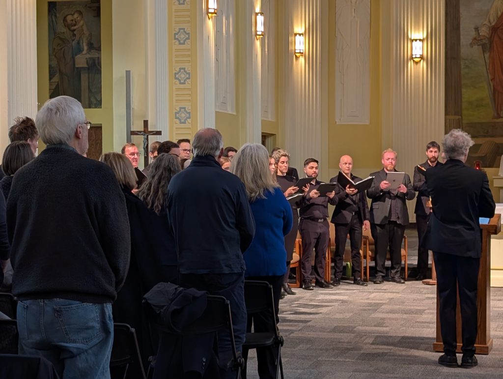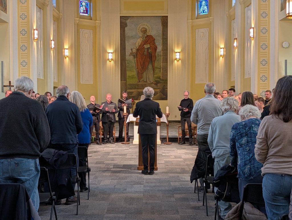 Mr. Larkin and his choir processed down the chapel’s main aisle, behind the cross-bearer. The service began with the Introit, “Let All Mortal Flesh Keep Silence,” as music and liturgy were bound into one sacred space with the words: