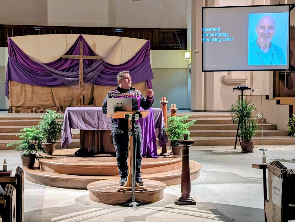 Fr. Jim Bleackley OMI, the first Yukoner in history to become a Roman Catholic priest, served as Pastor of St. Joseph’s Parish from 2019 to 2022. Fr. Tim Coonen, OMI spoke in personal terms about Fr. Jim, particularly of his ministry in the Yukon and how he served as a guide and offered much encouragement in pastoral work. Fr. Jim stepped in and led the Diocese of Whitehorse on an interim basis at a particularly difficult juncture, following the sudden death of the bishop in a plane crash. He had a love of justice and strongly supported the role of women in the Church. He knew that it was important to not only listen, but to hear. “Jim discovered the life of the Indigenous and received their love. He showed kindness and humility and had a huge open heart filled with love. Jim was a wonderful friend,” Fr. Tim said.