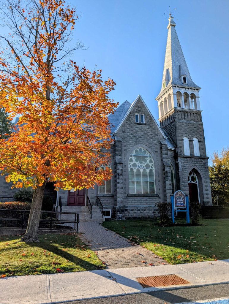 Alexandria United Church in North Glengarry is precisely what this publication is all about: discovering historic churches about which there is very little information online, and encouraging our readers to explore these hidden gems for themselves. I visited Alexandria United Church on Thanksgiving Sunday and attended their 9:00 AM service. A plaque next to the main entrance commemorating the community’s centennial indicates that the church was built in 1912. It began its life as a Presbyterian church. Presbyterian clergy arriving from Ottawa and Lancaster assisted with the dedication services on August 4 and August 11, 1912. The local community’s celebration of the opening of their new church continued with musical programming on August 5, 1912. I discovered that Alexandria United is colloquially known as the “Church on the Hill.”
