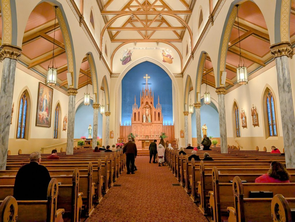 The church that I entered on that Saturday night was quite a different community from what it would have been near the end of the nineteenth century. For one, gone are the linguistic differences — the use of the German language faded away after World War I. And given the demographic changes in religious affiliation in this part of the United States, 2024 saw the consolidation of three churches — St. Mary’s and St. Peter’s in Chillicothe and St. Mary’s in nearby Waverly — to form a single pastoral unit: Our Lady, Queen of the Apostles Parish.